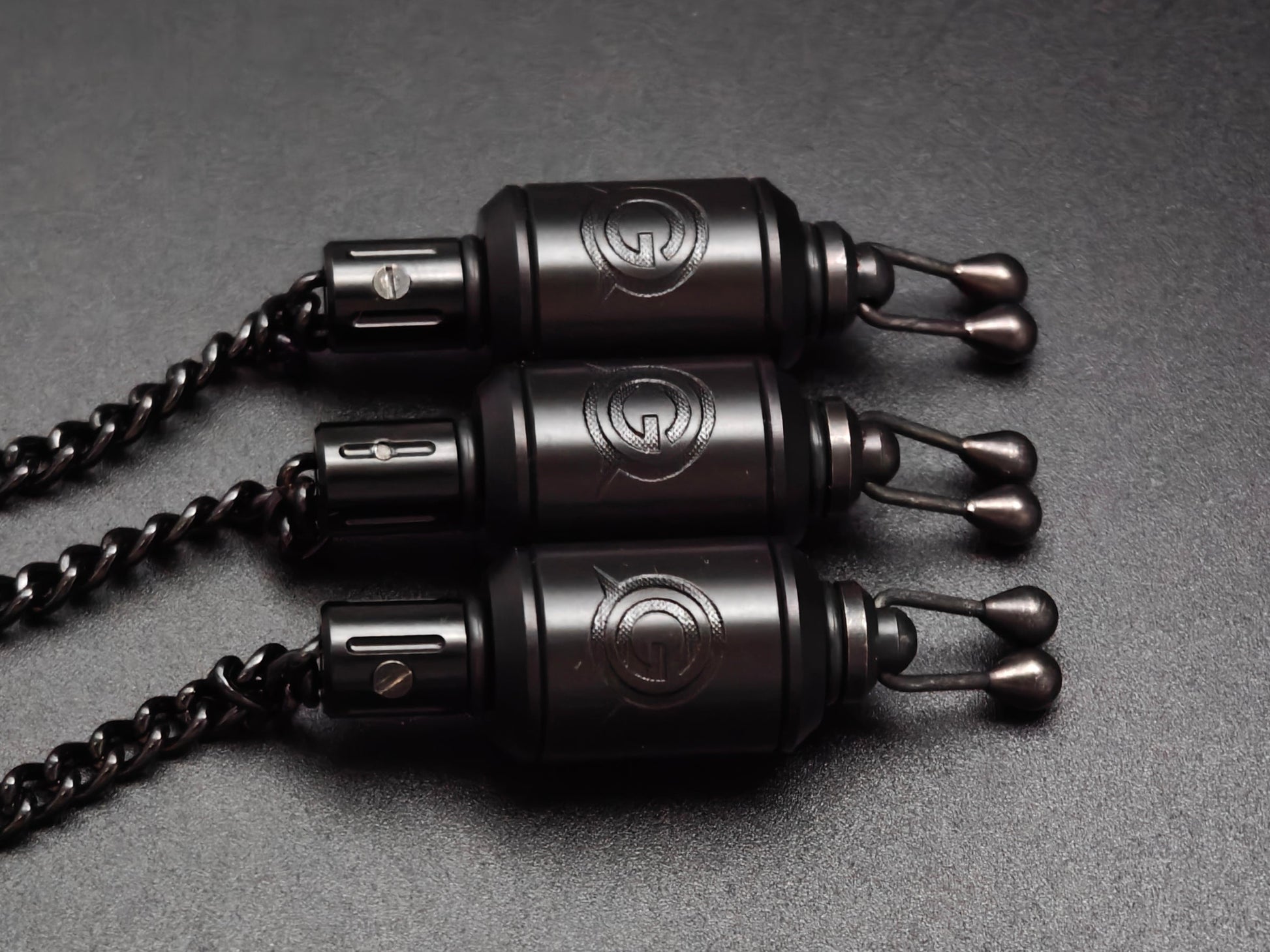 Deze compacte en volledig zwarte hanger is net zoals alle varianten in de Stinger reeks vervaardigd uit onverwoestbaar en slijtvast kunststof, voorzien van zwart geanodiseerde "hollow caps". De toevoeging van zwarte end-caps geven deze bobbin een bijzonder stoere uitstraling.